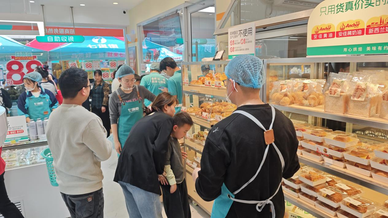 在七货街第八代店,"烘焙有约"作为核心品类在门店以大量专区呈现,深受顾客欢迎。很多顾客品尝一次便成为忠实客户——这是"烘焙有约"践行七货街品质战略的体现,只有品质才能赢得顾客的信任。